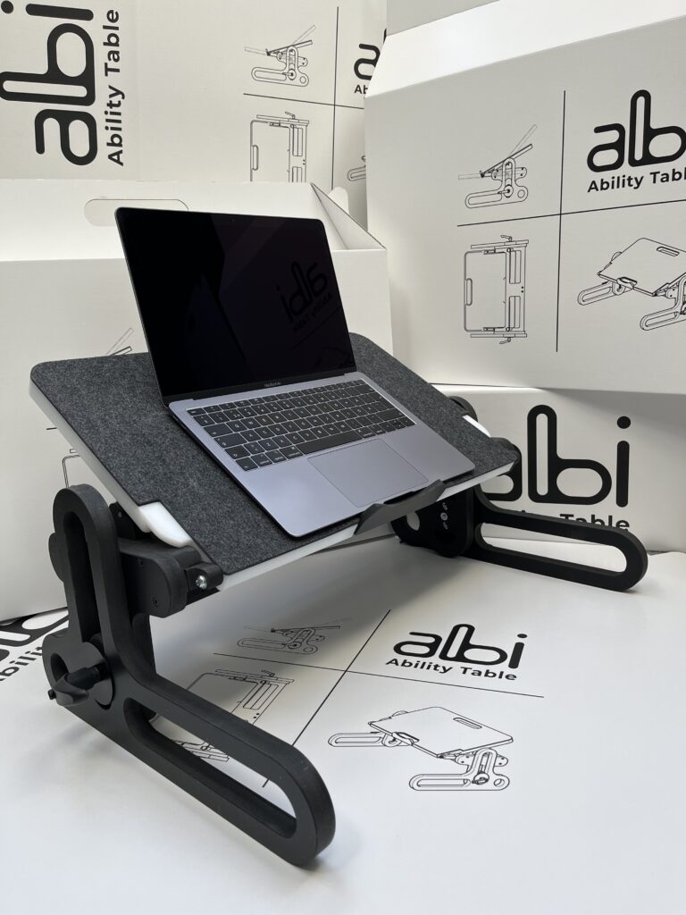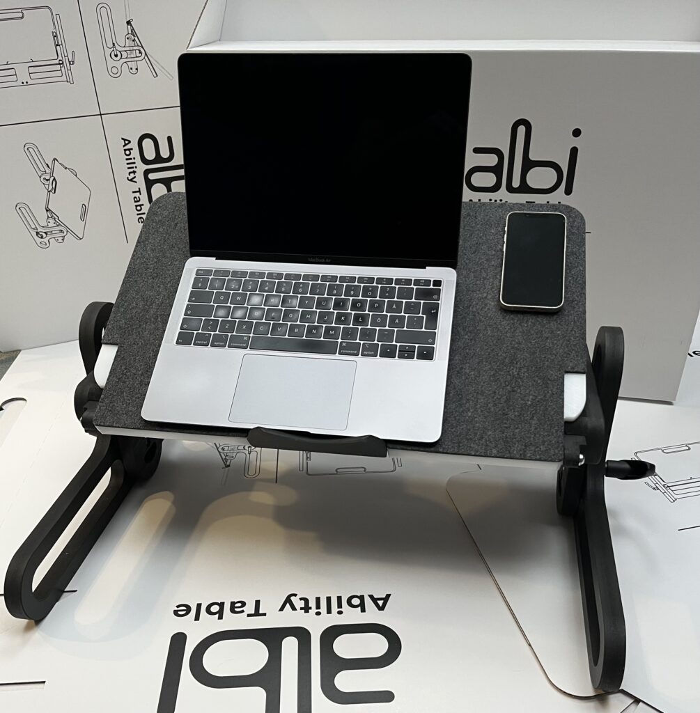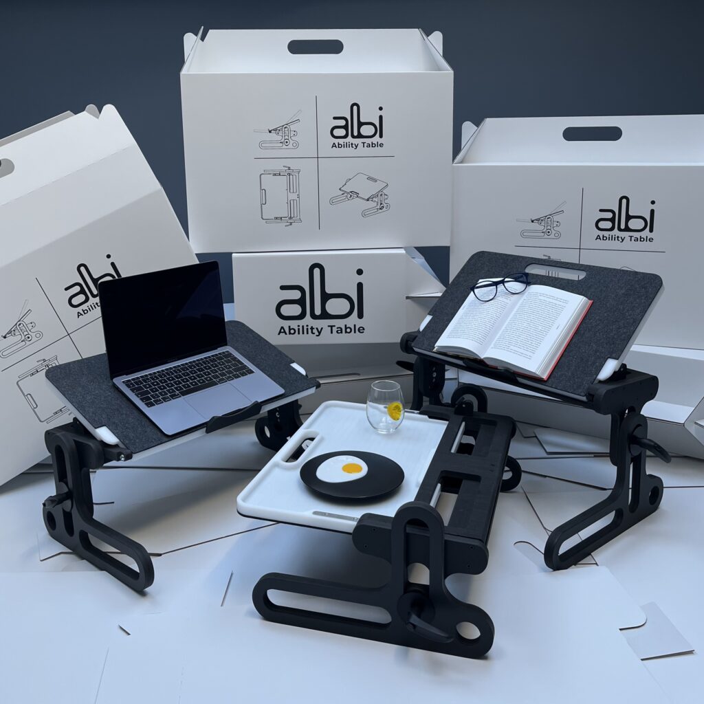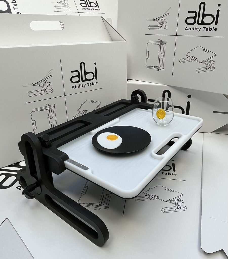 The Ability Table is a multifunctional and ergonomic bedtable designed for users who spend part or all of their day in bed (including individuals with special needs, people recovering from trauma, patients with paresis, bedridden users, the elderly, etc.).